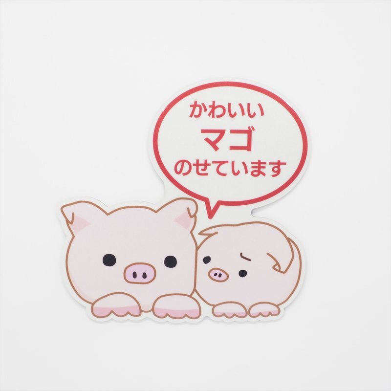 - (反射マグネット)高齢者マーク 孫のせています ブタ 12cm ホワイト セーフティ 孫乗せています