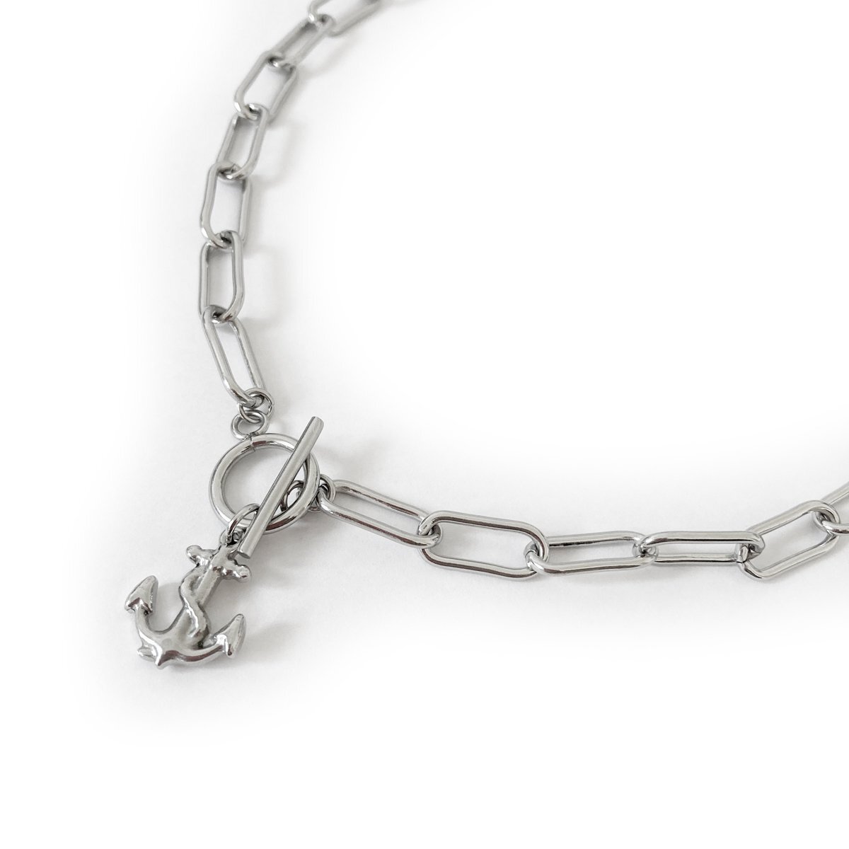 - ステンレス製 イカリチャームマンテルネックレスチョーカー ロング小豆チェーン 幅約7.5mm 35cm MN05