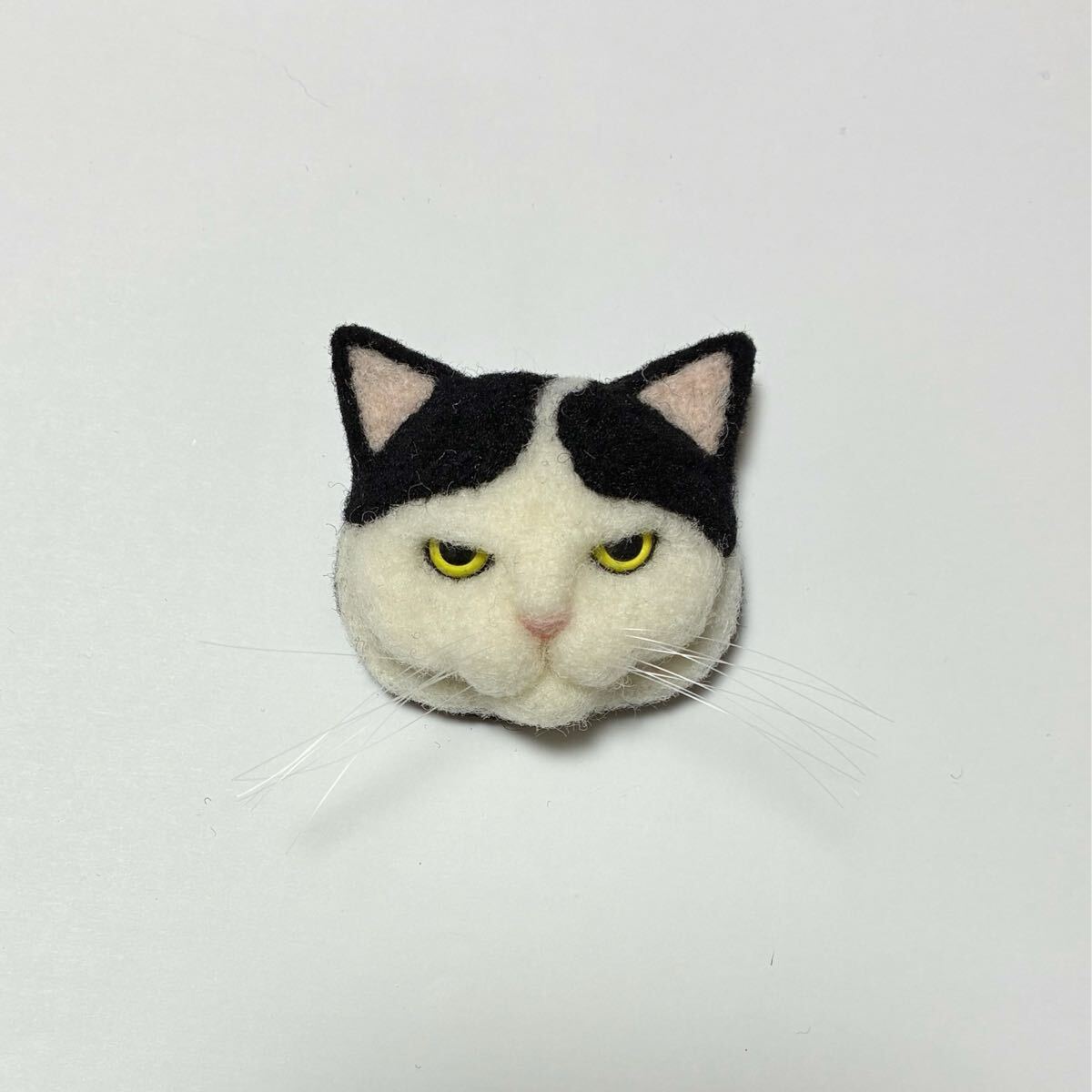 - 羊毛フェルト 猫ブローチ 黒ぶち猫