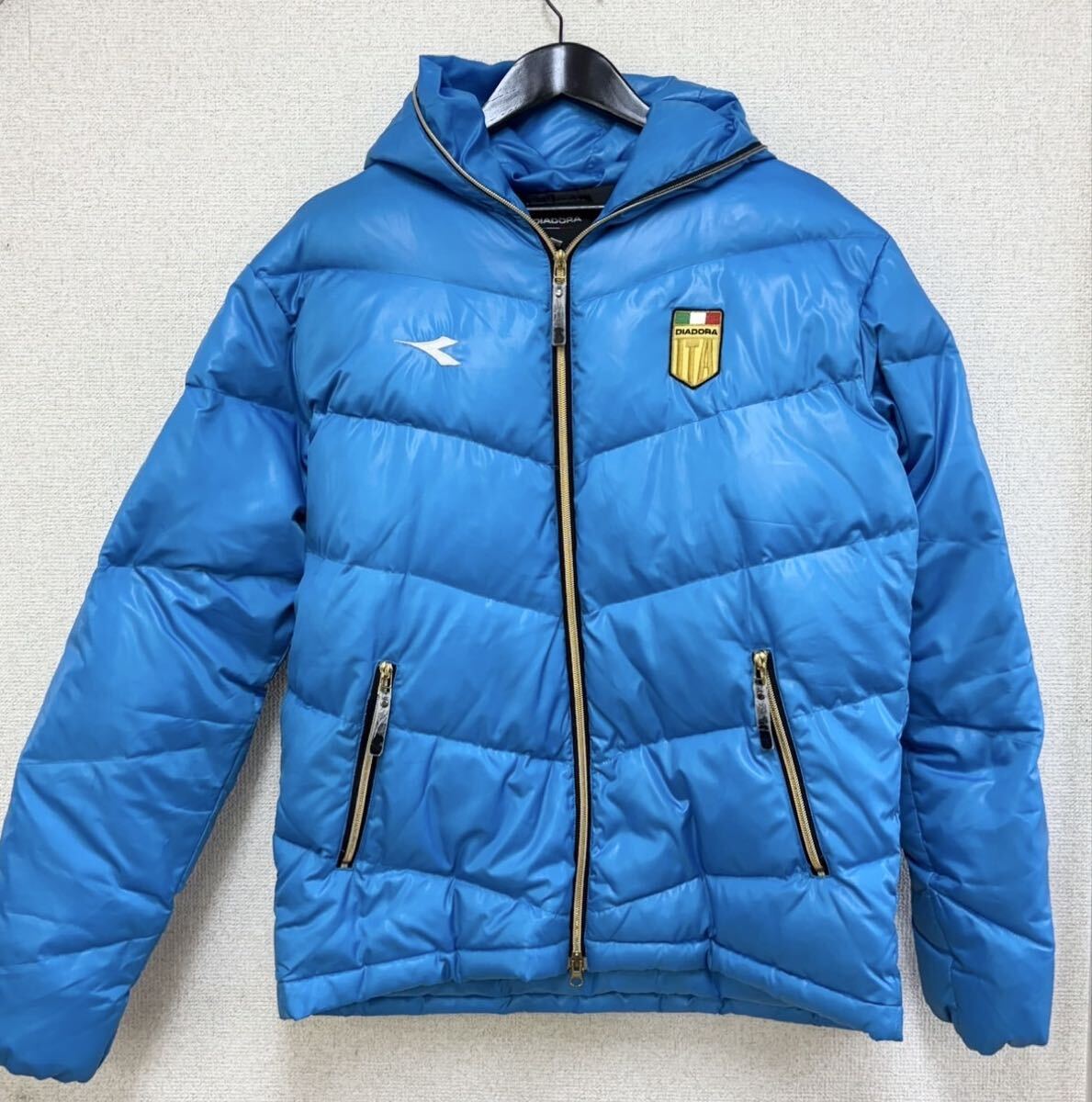 > DIADORA ディアドラ 肉厚 ダウンジャケット ブルゾン 水色 メンズ Lサイズ サッカー フットサル ダウン70%