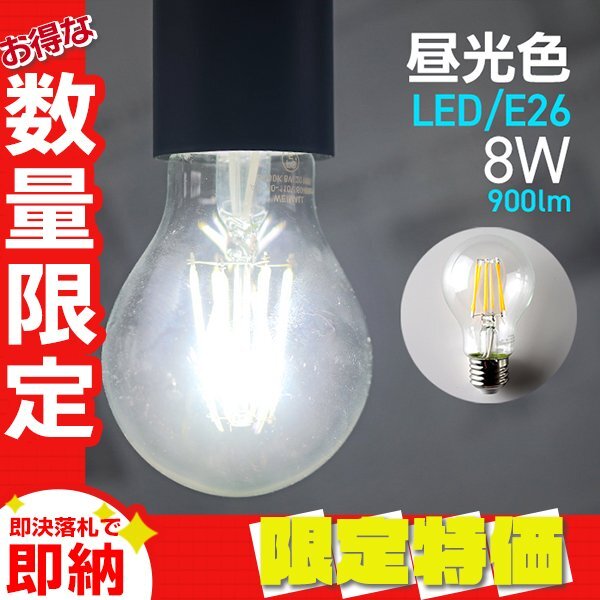 - 【送料無料 限定セール】LED電球 8W E26 昼光色 PSE取得 40W形 フィラメント電球 ランプ 節電 省エネ おしゃれ インテリア 照明 一年保証
