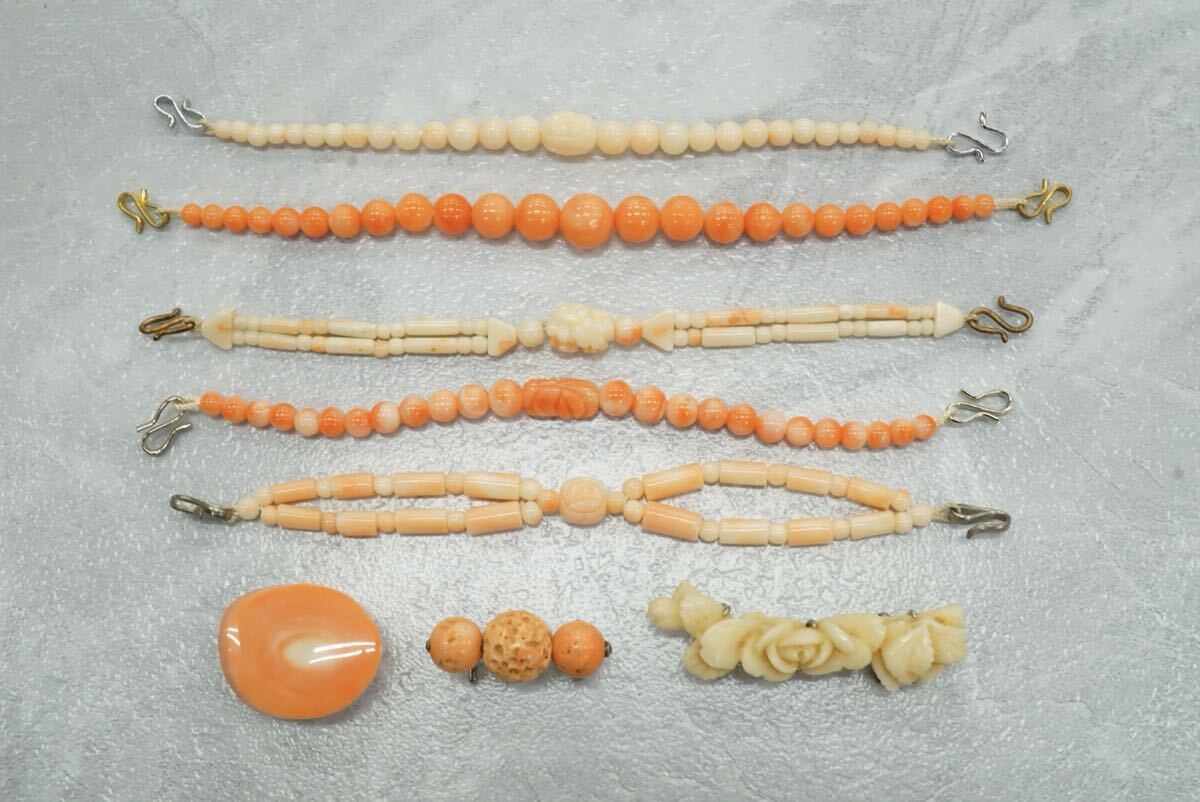 - B954 本珊瑚 帯留め 羽織紐 和装小物 8点セット ヴィンテージ アクセサリー 大量 まとめて おまとめ まとめ売り 和装小物 サンゴ コーラル