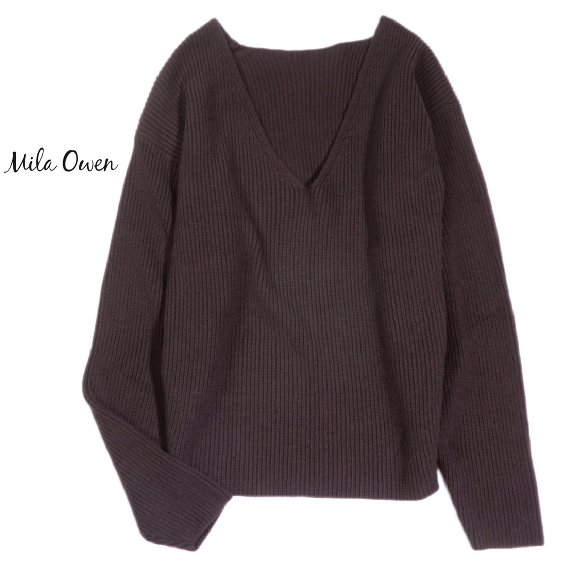 - ミラオーウェン Mila Owen ウールブレンド Vネック ニット プルオーバー 0 S~M