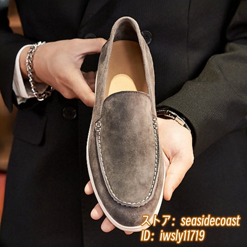 > 超希少■スエード革 ローファー 本革 スリッポン 職人手作り ドライビングシューズ ビジネスシューズ 牛革 革靴 紳士靴 グレー 25.0cm
