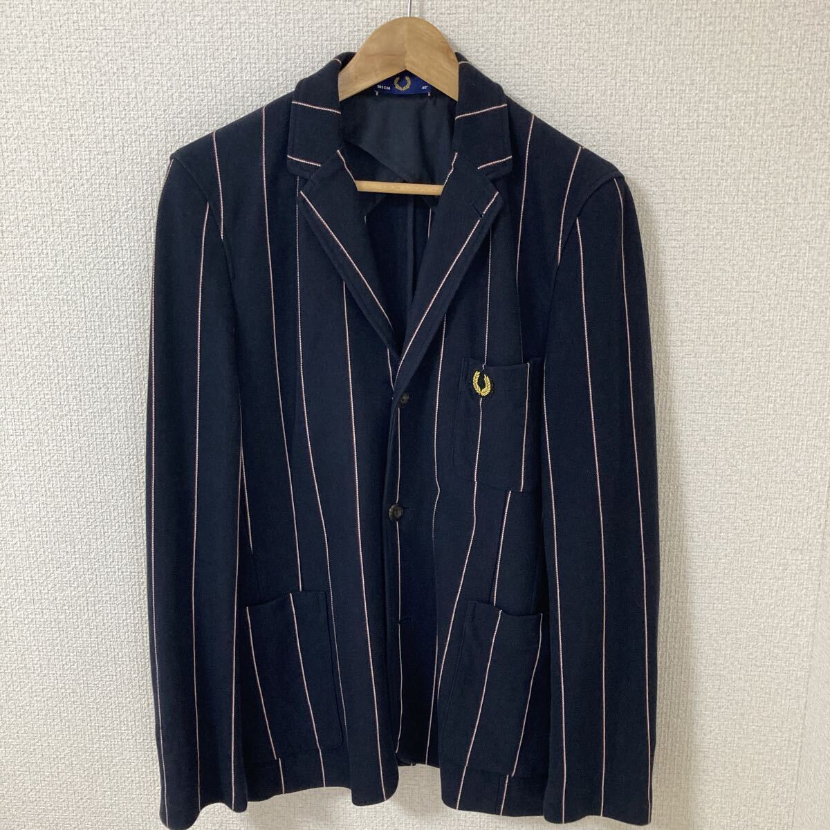 > FREDPERRY フレッドペリー ストライプ ジャケット サイズ40 Lくらい ネイビー×白赤