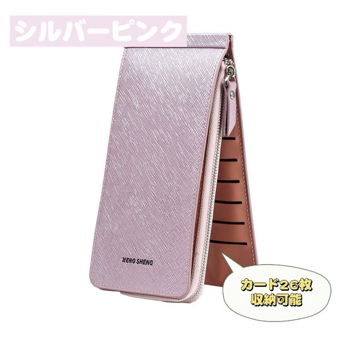 - カードケース(シルバーピンク)大容量 薄型 長財布 26枚収納 スリム コインケース 小銭入れ