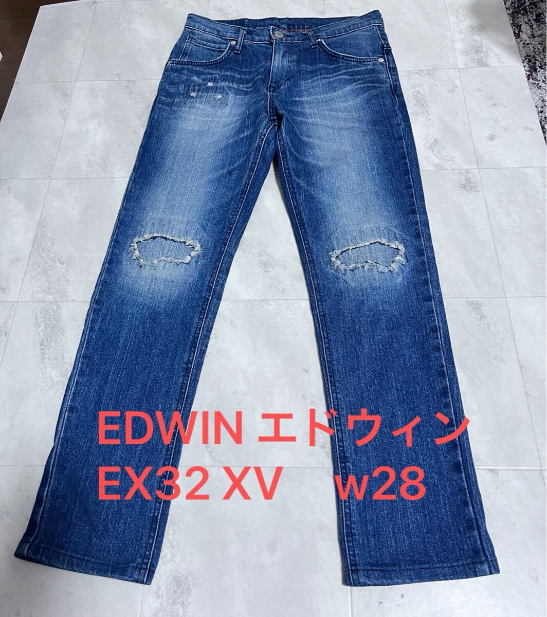 - EDWIN エドウィン EX32 XVシリーズ ダメージ&リペア加工 ストレッチ スリム デニム パンツ ジーンズ 28インチ メンズ 日本製