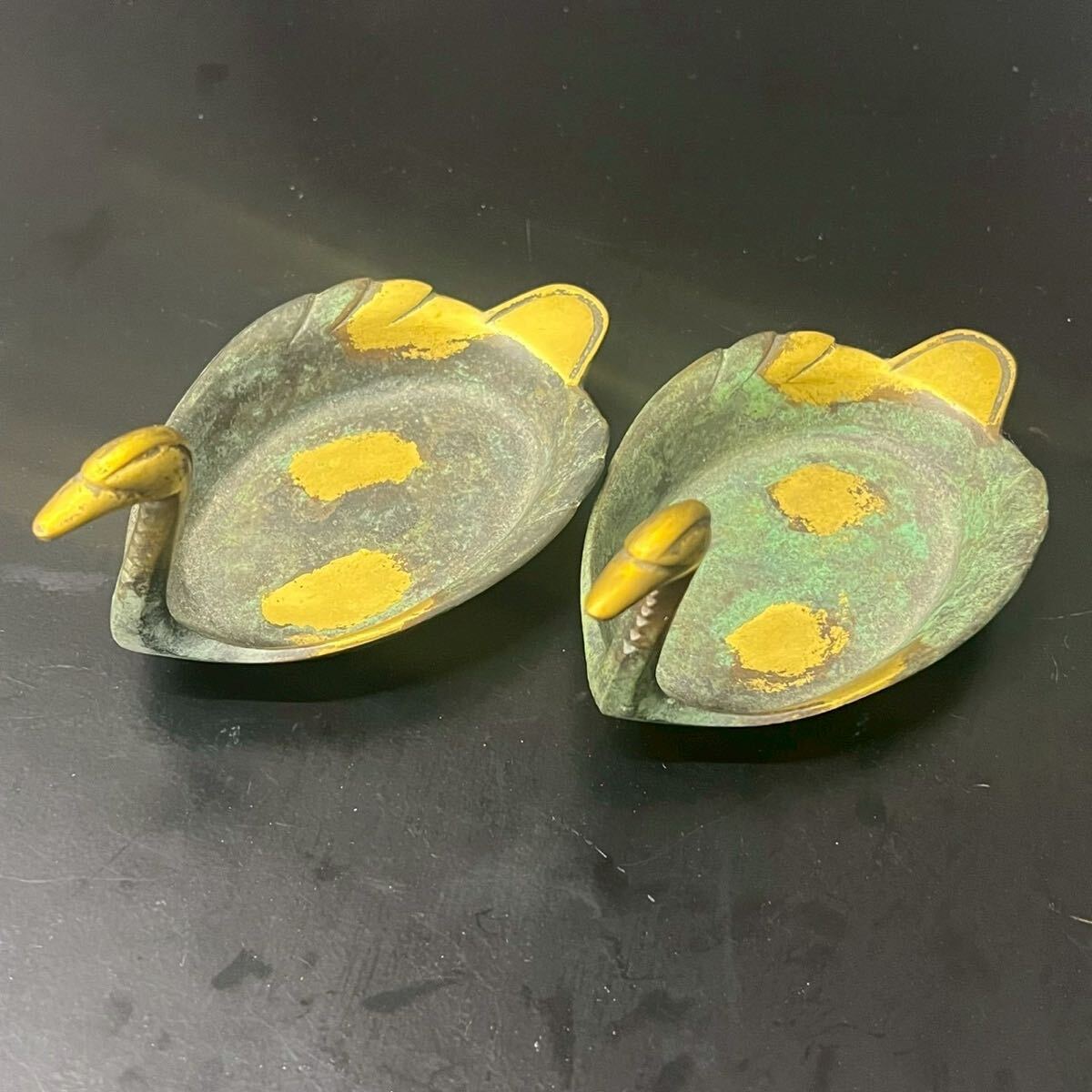 - 1円 秦 蔵六 造 塗金銅 莨皿 瑞鳥 床置 一対 在銘 刻印 銅器 茶道具 仏道具 金属工芸 時代物 鉄瓶 古美術