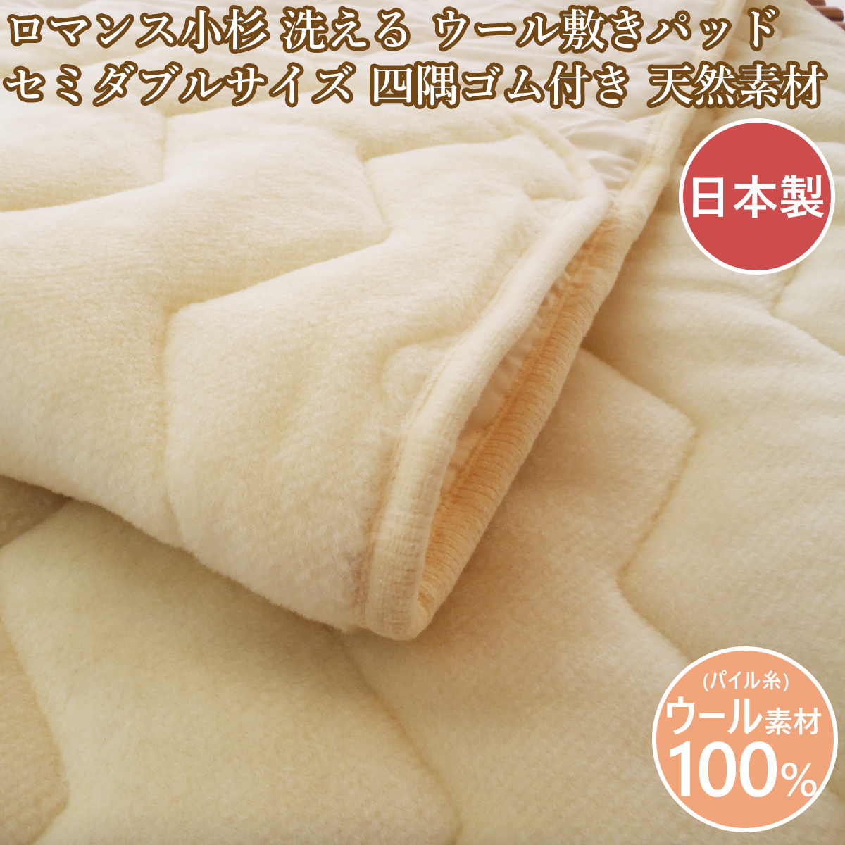 > ロマンス小杉 敷パッド セミダブル ウール敷きパッド 日本製 あたたか敷パッド 天然素材 洗える ウール セミダブルサイズ