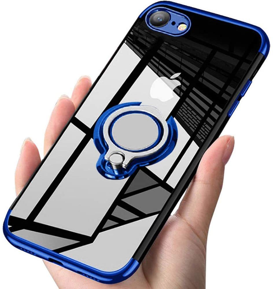 > iPhone SE2用ケース 青色 リング付き ブルー 透明 TPU 薄型 軽量 人気 オシャレ iPhone8 iPhone7も可 アイホン アイフォン アイホーン