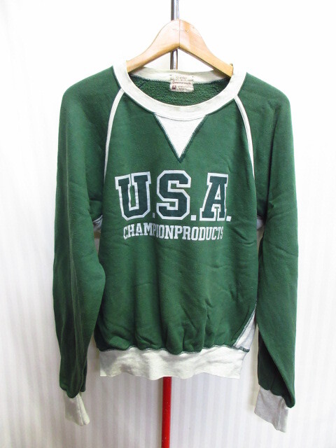 > チャンピオン ランタグ ヴィンテージ復刻 スウェット メンズL 緑グレー トレーナー 長袖スウェットジャージトップ カットソー 10141