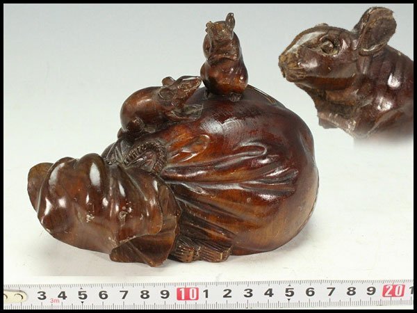 - 【金閣】木彫 彫刻 布袋鼠 置物 旧家蔵出 送料無料(LC854)