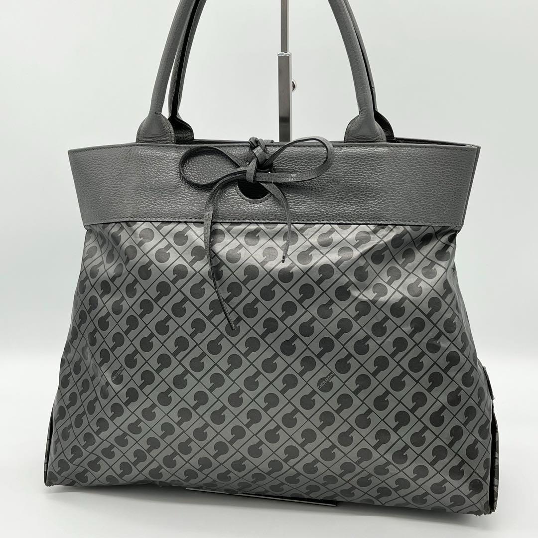 > 【良品】GHERARDINI ゲラルディーニ ソフティ ハンドバッグ ロゴグラム ナイロン フォーマル レディース 通勤 通学 グレー AG700505A