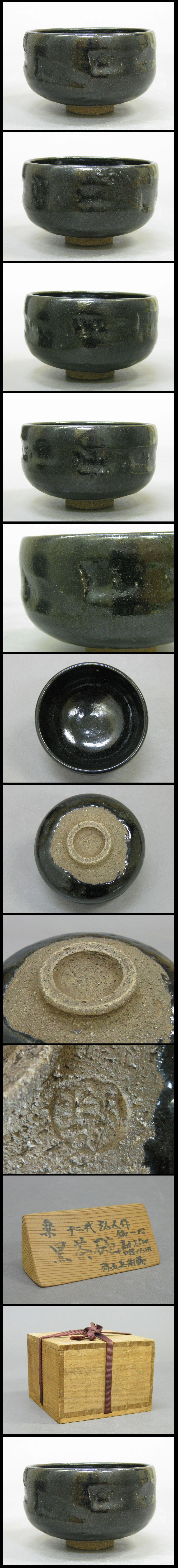 - 【心庵】楽焼 楽十二代 弘入/黒茶碗 付箱 茶道具 B753
