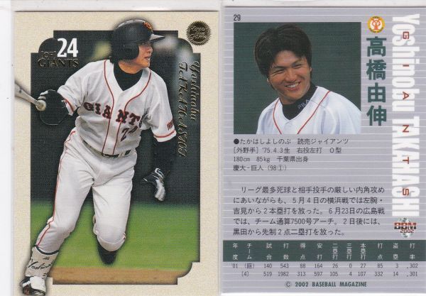 - ●2002BBM/TTG 【高橋 由伸】 BASEBALL CARD No.29:巨人 R3