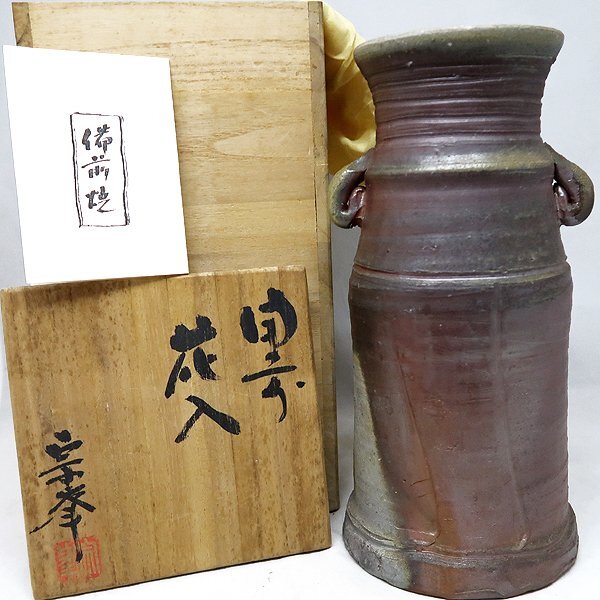 > DKG★送料無料★ 未使用 備前焼 『 好本宗峯 』造 花入 花器 耳付花入 花瓶 箱付き