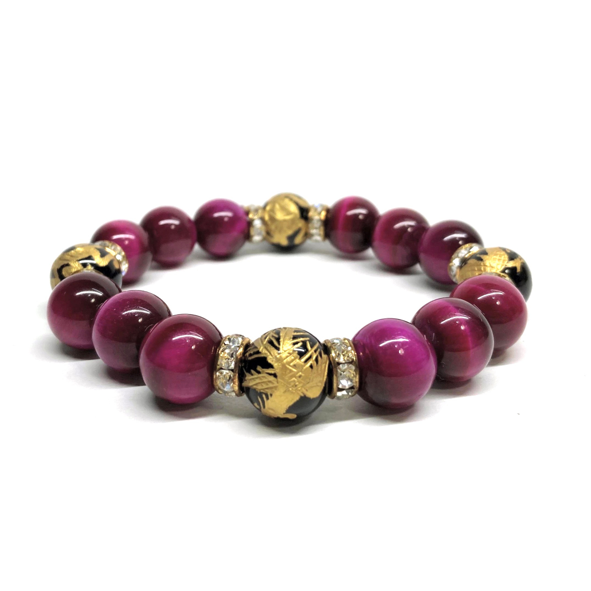 - 四神獣金彫オニキス×ピンクタイガーアイ 12mm パワーストーン ブレスレット 天然石 青龍 白虎 玄武 朱雀 運気上昇 開運 金運 お守り G