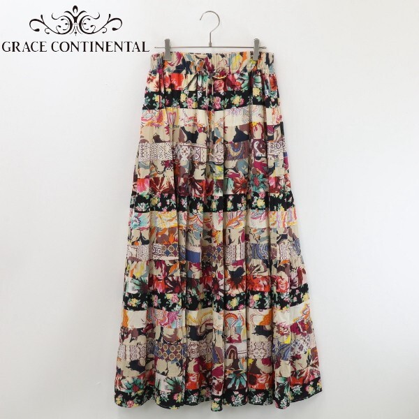 - 【KA335】美品◆GRACE CONTINENTAL グレースコンチネンタル パッチワーク ボーダー イージー ロング スカート 36