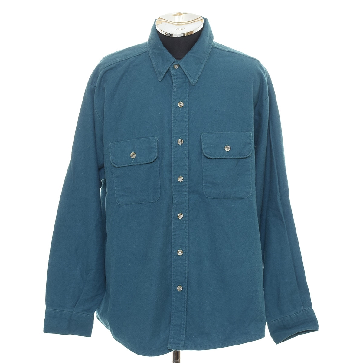> ●565452 FIVE BROTHER ファイブブラザー ●シャミークロスシャツ 長袖 90s USA製 ヴィンテージ サイズXL メンズ 米国製 ブルーグリーン