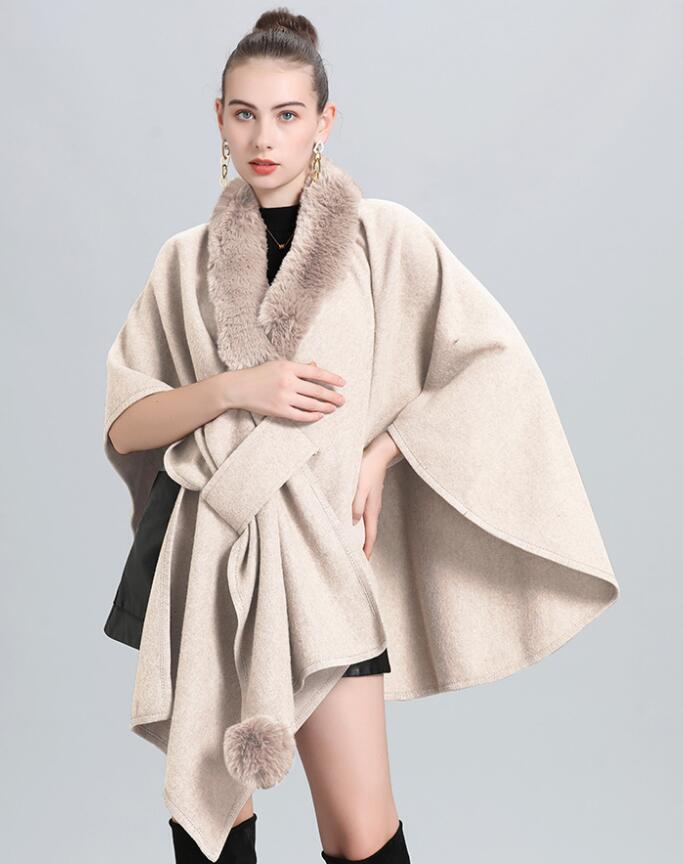 - M1021 ポンチョレディース● 着心地抜群 20代30代40代 ● ニット素材 コート 防寒 ベージュ