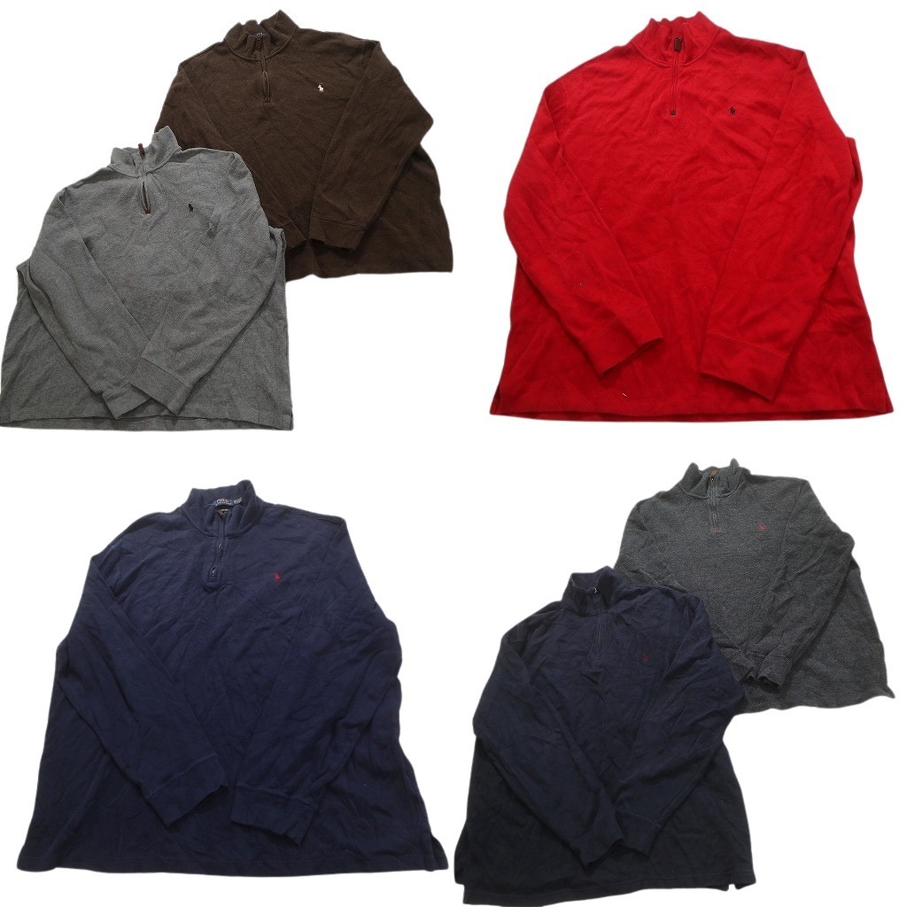 - 古着卸 まとめ売り ラルフローレン ハーフジップ セーター 6枚セット (メンズ 2XL ) ネイビー レッド ブラウン 中古 古着 NC3632