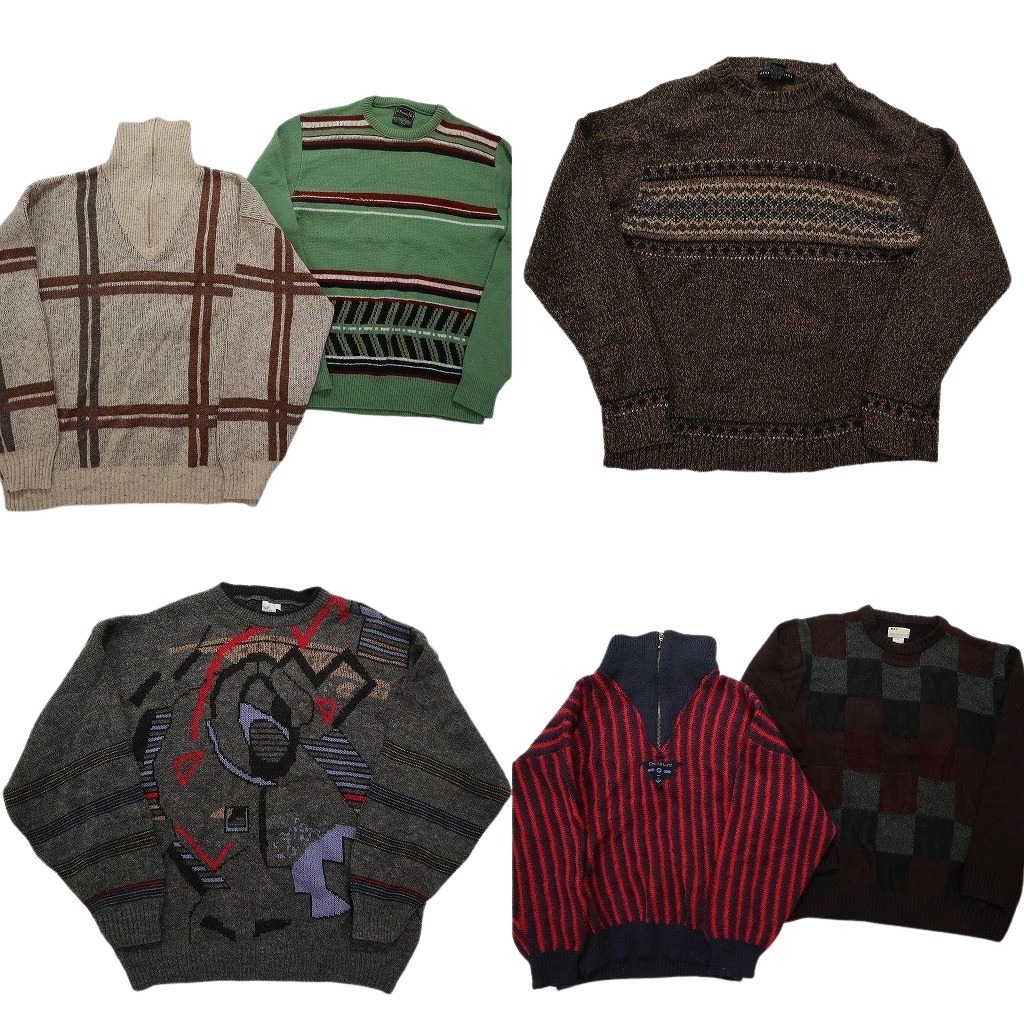 - 古着卸 まとめ売り ニットMIX セーター 6枚セット (メンズ M /L ) ハーフジップ クルーネック アート系 ストライプ NC3594 1円スタート