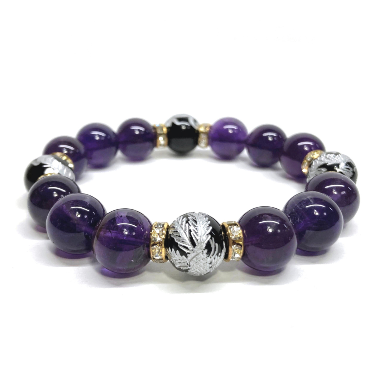 - 四神獣銀彫オニキス×アメジスト 12mm パワーストーン ブレスレット天然石 青龍 白虎 玄武 朱雀 運気上昇 開運 金運 お守り 四神相応 G