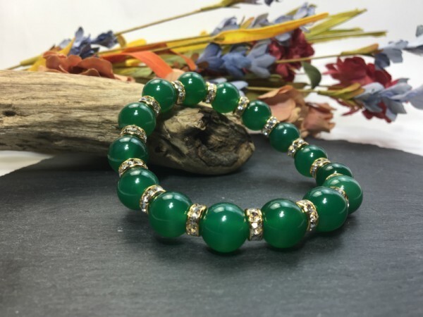 - パワーストーン ブレスレット 緑瑪瑙 12mm 天然石ブレス ゴールド 開運 浄化 数珠ブレス メンズ 男性
