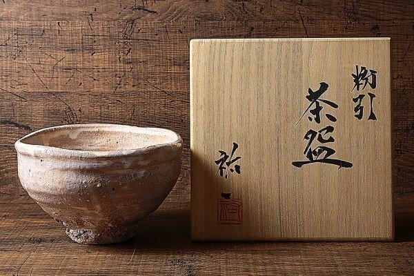 - 5011p 猪飼祐一 京焼 粉引 茶碗 茶道具 共箱 作家物 個展 黒田陶苑 /179