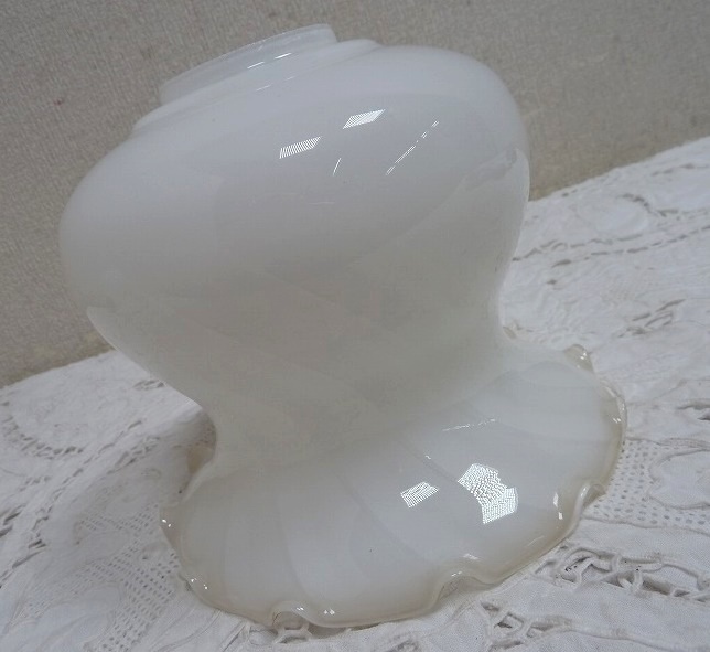 > (☆BM)昭和レトロ ガラス製 ランプシェードのみ②ホワイト 白 電傘 テーブルスタンド シャンデリア 照明 アンティーク調 部品 パーツ