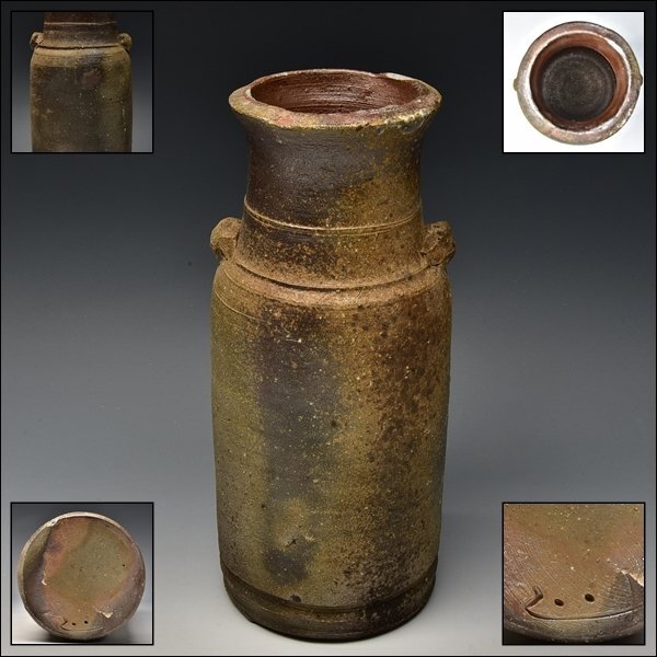 - U08763 吉本正 備前 窯変 花入 花生 花器 花瓶 壺 茶道具 師 人間国宝 藤原啓