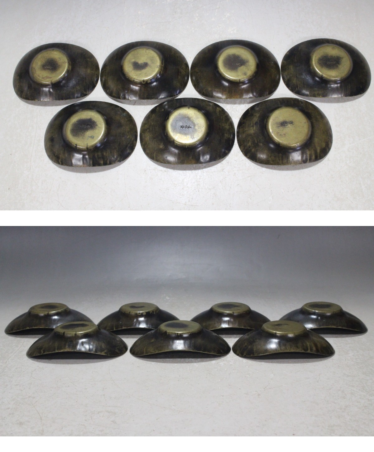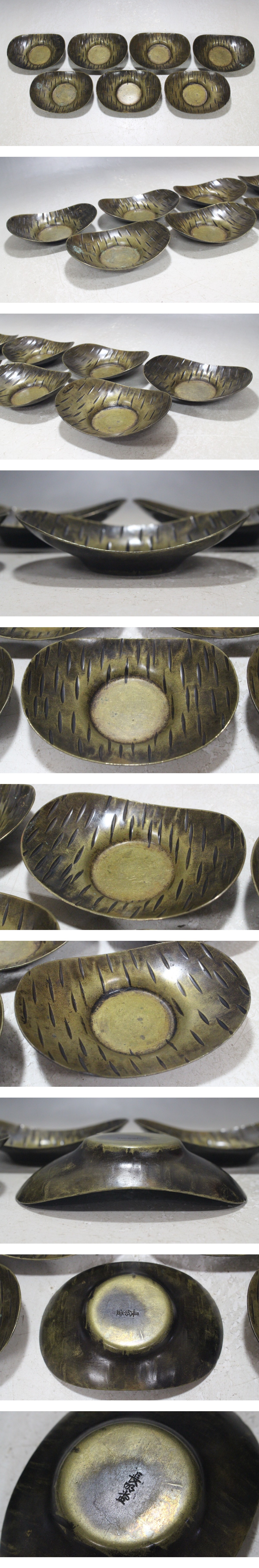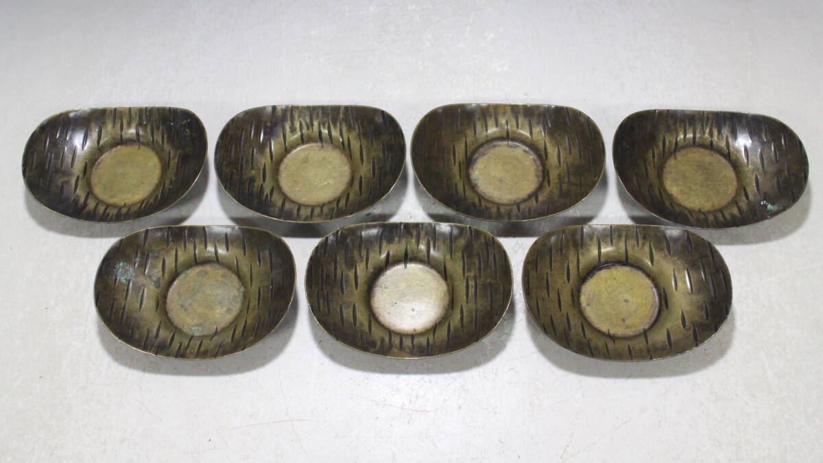 - 銅製 小判型 茶托 7客 (約488g) 茶道具 金属工芸品 時代物 骨董古美術 チ49