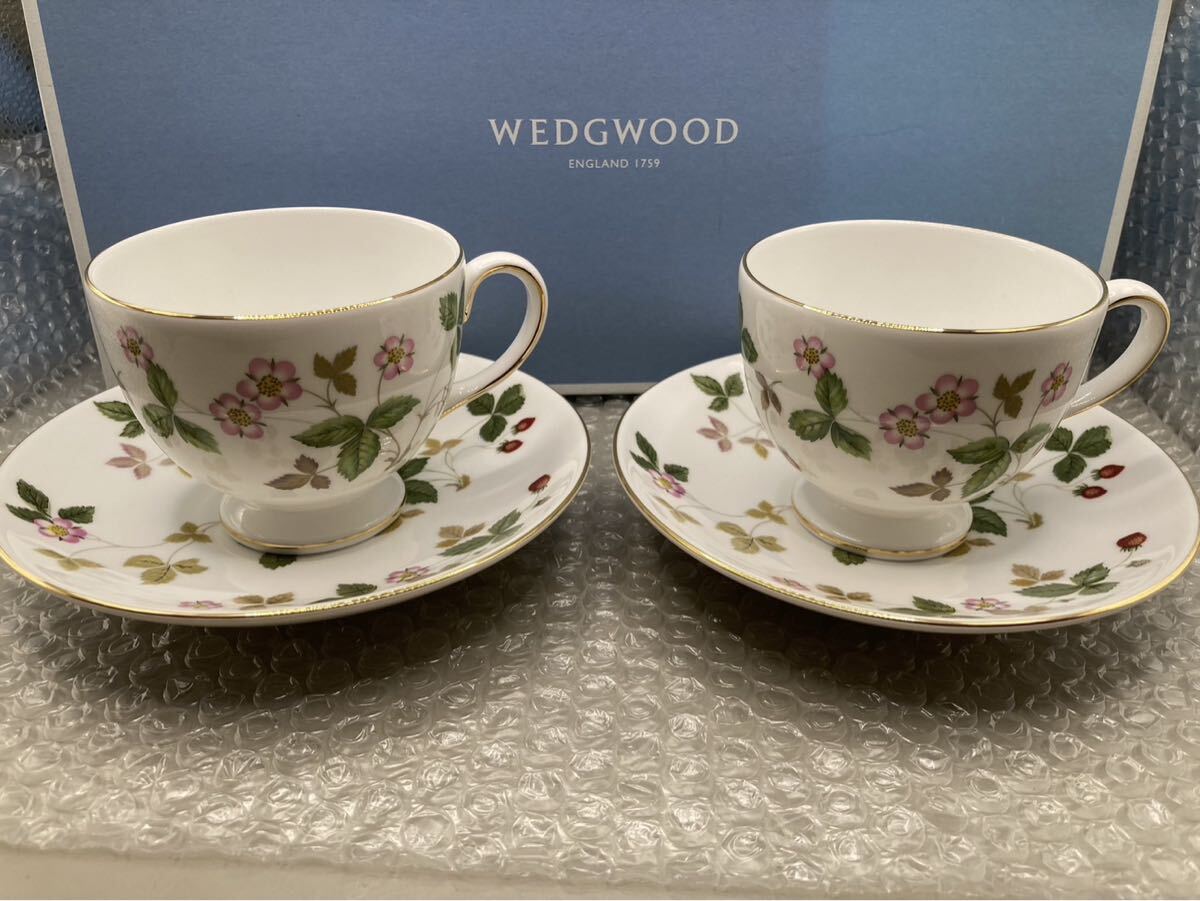- ◯ 未使用 ◯ WEDGWOOD 洋食器 カップ ソーサー 2客 Wild Strawberry ウェッジウッド ティーカップ ペア ワイルドストロベリー 箱つき ◯
