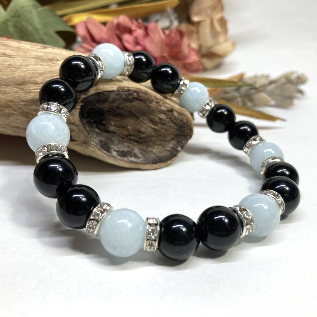 > モリオン&アクアマリンパワーストーン ブレスレット 天然石ブレス (シルバー) 10mm メンズ・レディース 厄除け 魔除け ☆
