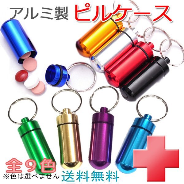 - 送料無料 リング付ピルケース アルミ / 色は選べません。 タブレット ケース 薬入れ 薬箱 携帯 旅行 散歩 登山 出先