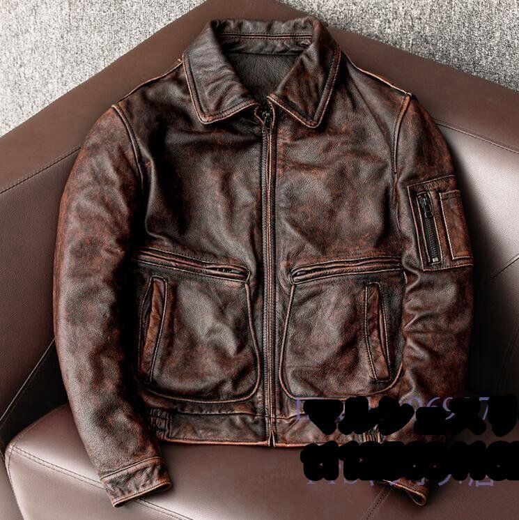 - 新品レザージャケット A2フライトジャケット 上品 ユーズド加工 本革 牛革 高級 ライダースジャケット 革ジャン M~4XL