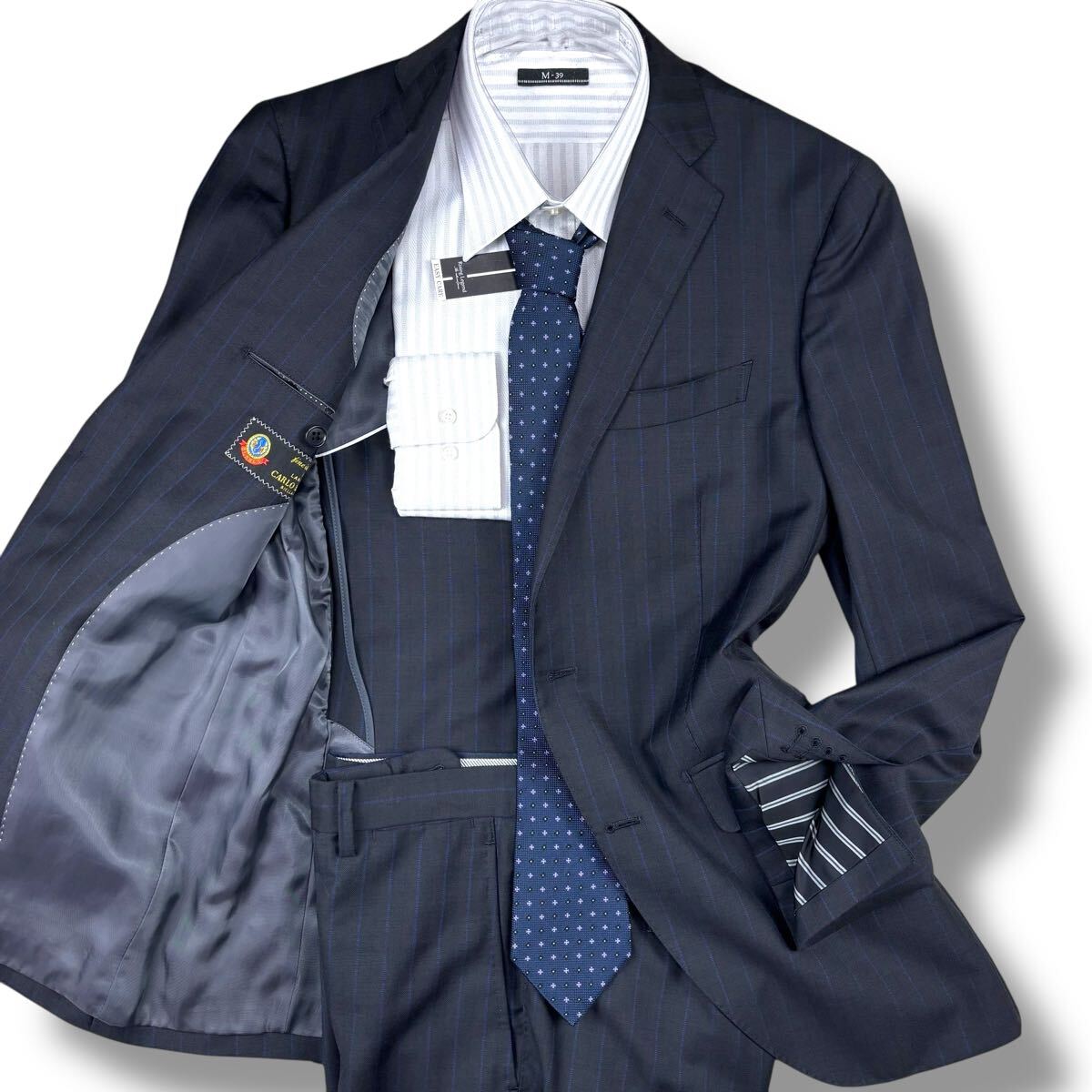> 1円 極美品 スーツカンパニー THE SUIT COMPANY × CARLO BARBERA スーツ セットアップ 2B シャドーストライプ メンズ ネイビー M