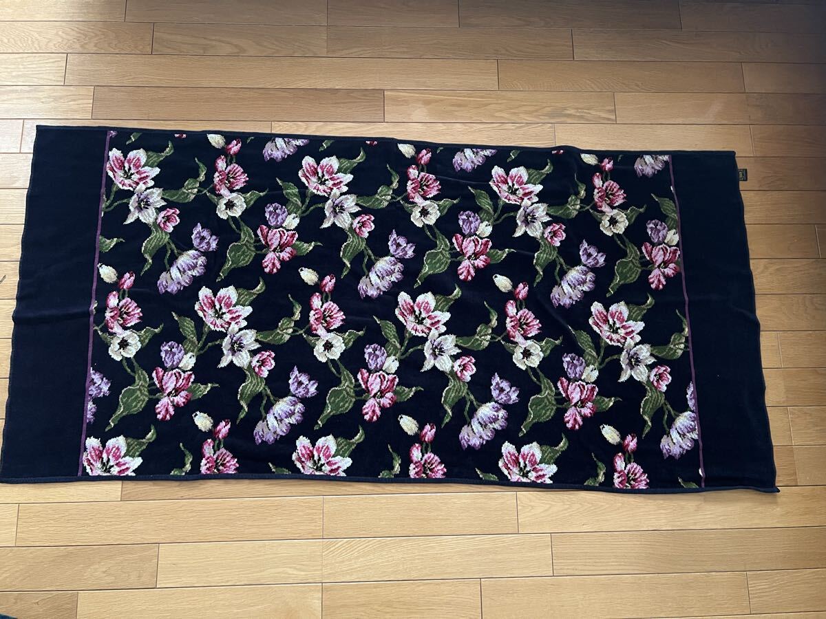 - フェイラー★黒 花柄 バスタオル ひざ掛け USED♪f