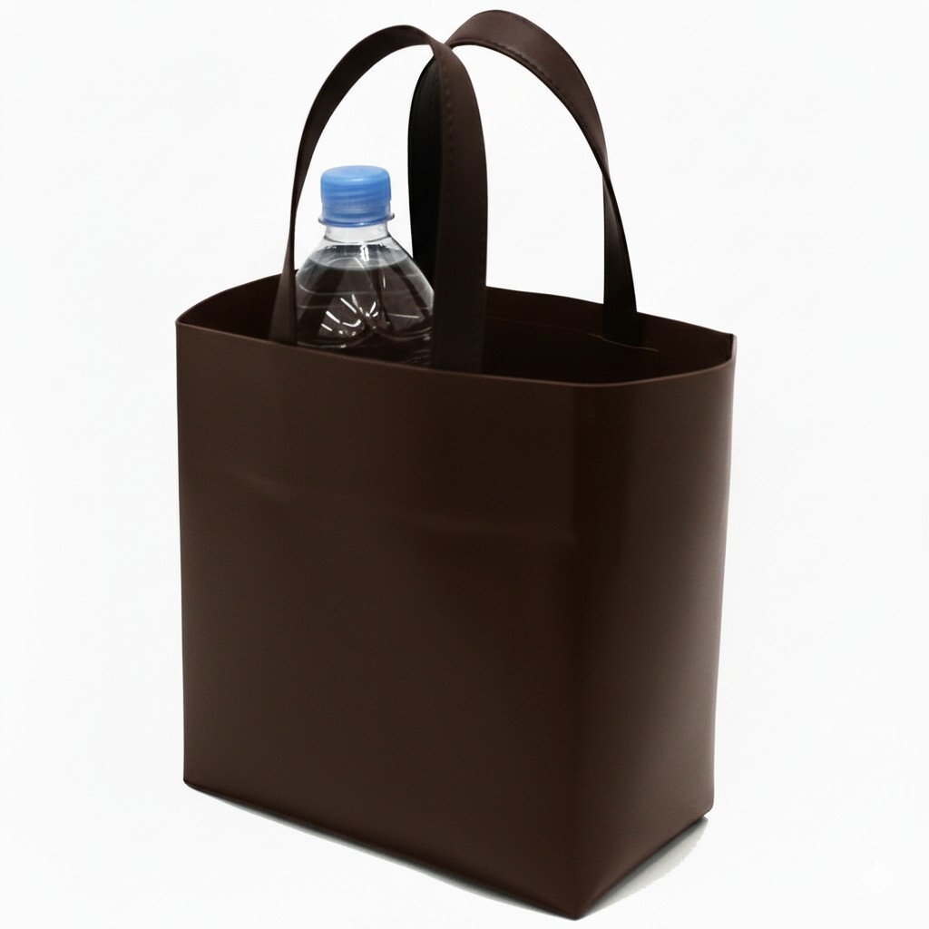 - 送料無料★リサイクルレザーで作った折りたたみ出来るショッピングバッグ★チョコ★ショッパーエコバッグ