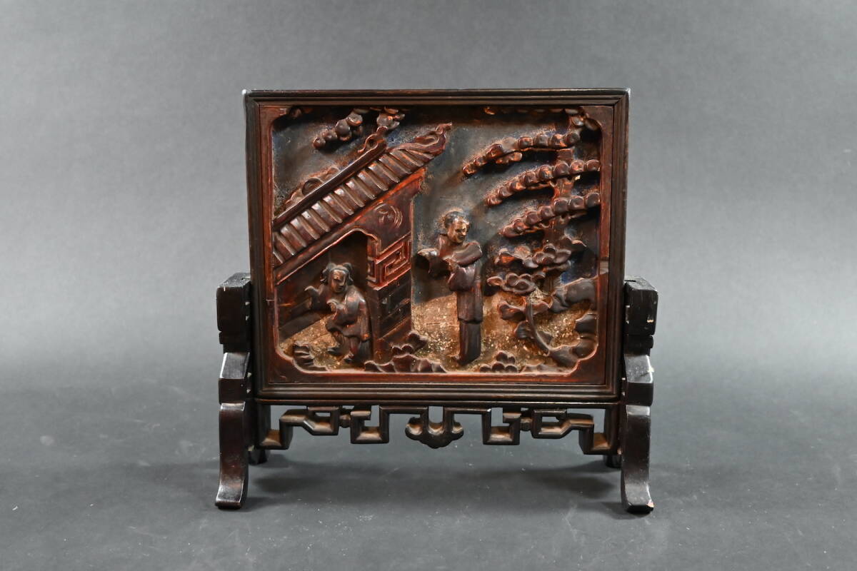 - E4 中国 書道具 硯屏 唐物 古玩 文具 文房具 文房四宝 蝋印 唐木 中国美術 漆塗 漆芸