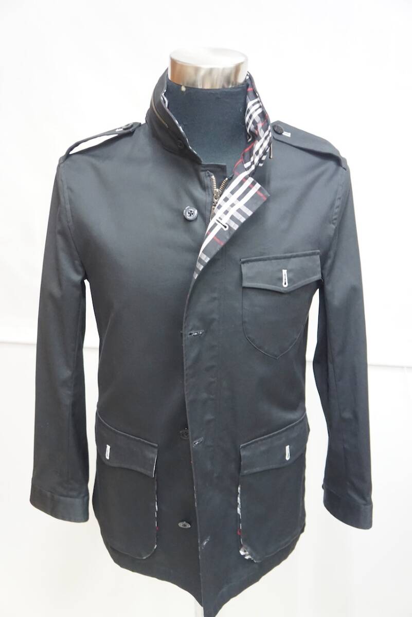 > ♪BURBERRY BLACK LABEL★ステンカラーコート/L/コットン/BLK/ロゴ刺繍/BMP40-612-09