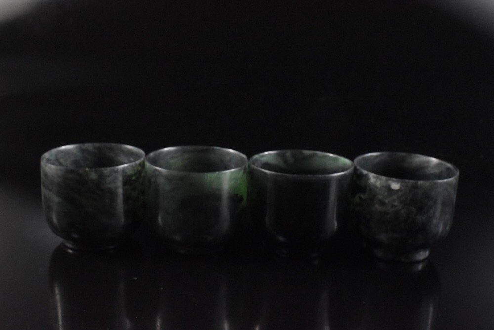 - 【雲】某名家収蔵品 石製 玉製 煎茶碗 4客 古美術品(旧家蔵出) F8023