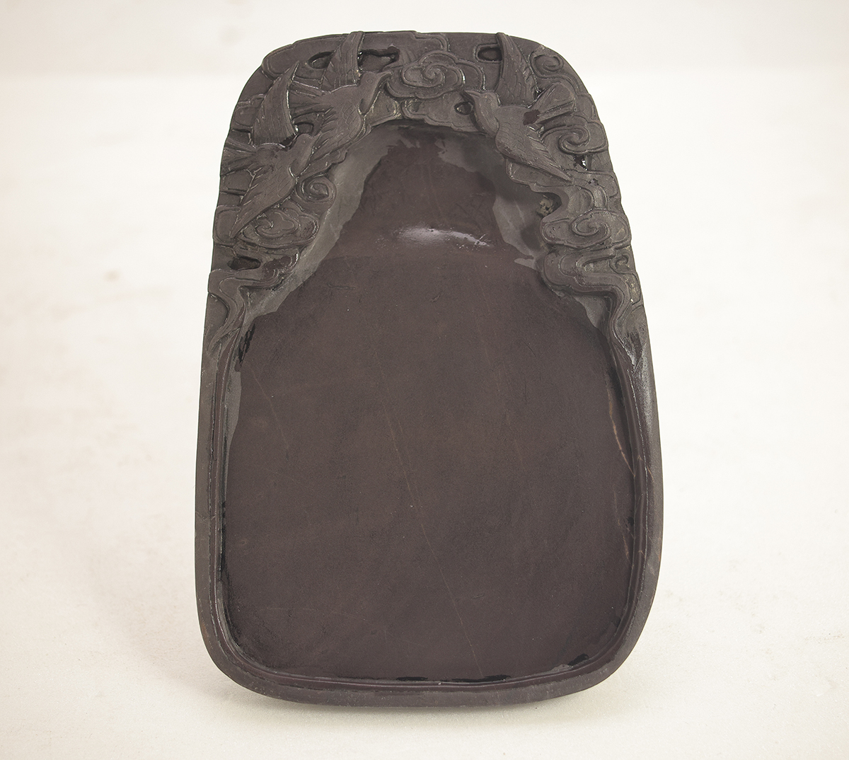 - 250944 端渓 硯 雲鶴紋 老坑 唐木箱 硯本体 サイズ:15.5×10.6×H1.7cm 漆箱 検:端渓硯 端硯 老坑 金線 書道具