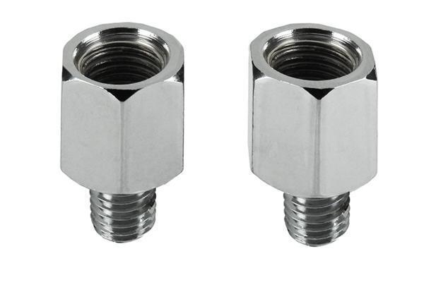 車体側ネジ径 正ネジ8mmから、ミラー側ネジ径 正ネジ10mmに変換します。10mmのミラーを8mmの車体に取り付けできるアダプターです。ご検討いただけますと幸いです。