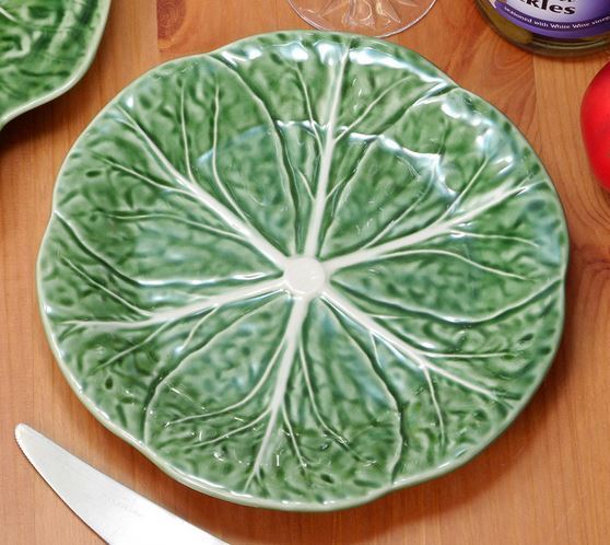 鮮やかなグリーンが楽しいキャベツシリーズで、瑞々しいキャベツの葉っぱがそのまま陶器になってようです。