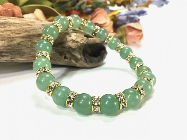 - アベンチュリン パワーストーン ブレスレット 天然石ブレス 10mm メンズ・レディース (ロンデル:ゴールド) 開運 浄化 数珠ブレス♪