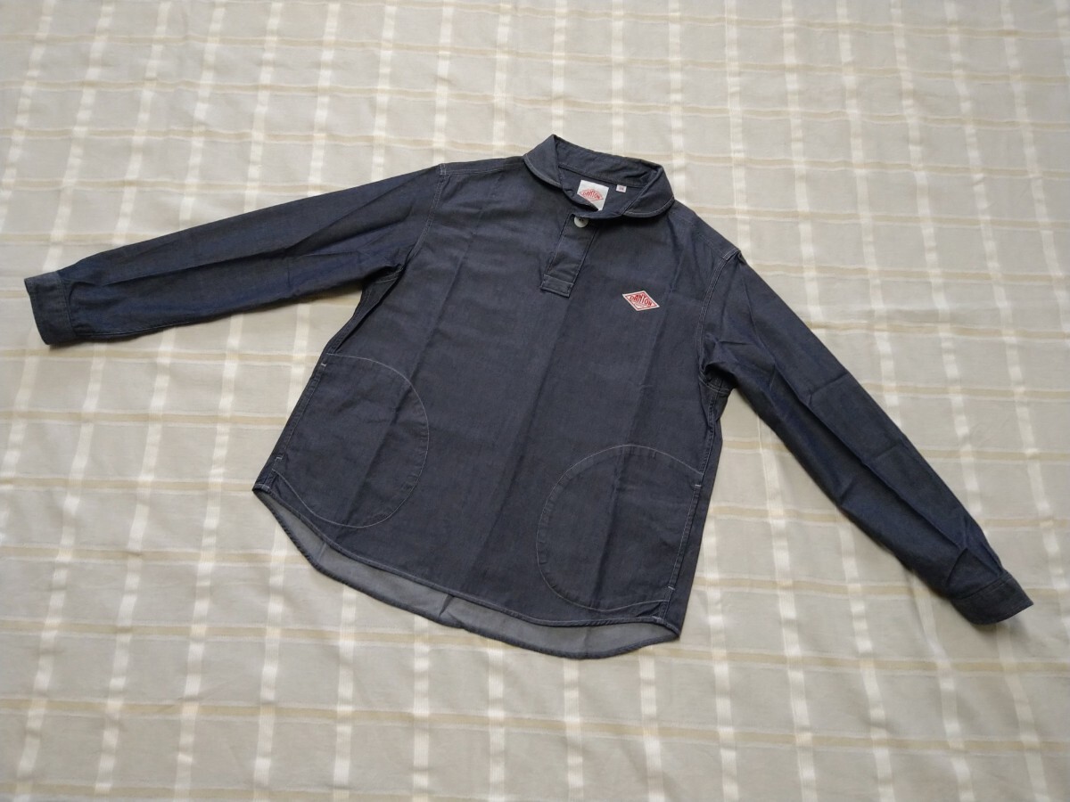 - Danton ダントン 丸襟 ひとつボタン ブラックデニム調 長袖 シャツ USED 自宅保管(342