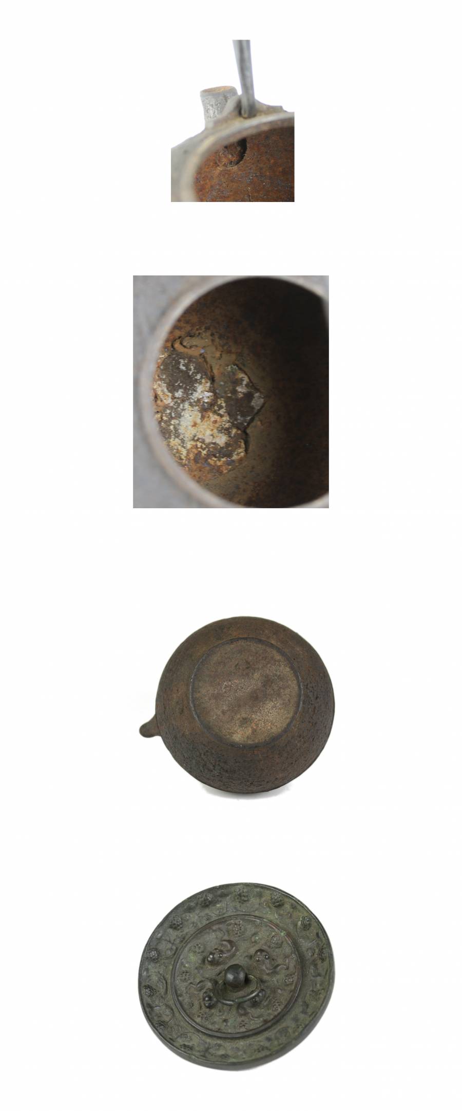 悪い評価が3つ以上、又は新規のお客様のご入札は こちらで削除させていただく場合がございますのでご入札していただく際は事前に「出品者の質問」へご連絡ください。 xvpbvx ----------------------------------------------------------------------------------時代 青銅古鏡蓋 砲口 小 鉄瓶 ( 小振 煎茶 )幅13.3㎝ サイズ 注ぎ口を含む幅 約13.3㎝ 高さ 約15.7㎝ 蓋の直径 約6.1㎝ 蓋の重量128g 深さ 約5.5㎝ 商品状態 良好です。 のちのご使用による水漏れ、破損は保証できませんのでご了承下さい。 目で見てわかる範囲の傷や欠点は掲載致しますが、 全ての鉄瓶において、上手な古い直し(釡補修)があった場合、 当方も見ただけでは分り兼ねますので、 あると思って入札して下さる方が良いと思います。ご了承ください。 当方で分かる(目で見える)範囲の傷や欠点は明記しておりますが、骨董品・アンティーク・中古品ですので、説明しきれない時代によるスレ、変色、 小さなへこみ、汚れ、小キズ、使用感などある場合があります。 そのような経年による欠点を時代の経過によるものとして骨董品にご理解のある方、 時代感を愛して下さる方のご入札をお待ちしております。 また、これらの理由による返品・キャンセル等はお断り致します。 できる限り写真を多く掲載するよう努力致しますので状態は画像で よくご確認の上ご入札をお願い致します。 ■発送方法 ---------------------------------------------------------------------------------- ・福山通運元払い 全国一律 1,200円(北海道・沖縄県 別送料) ■海外発送 ---------------------------------------------------------------------------------- EMS国際スピード便 重量、大きさによっては発送できない場合があります。また、商品の大きさによっては 梱包代を頂く場合がございます。詳しくは質問欄よりご質問ください。 ※ワシントン条約に該当する商品の海外発送はできません。予めご了承くださいませ。 ■返品キャンセル ---------------------------------------------------------------------------------- 基本的には商品の返品交換、キャンセルはお受けできません。 但し、当方で「本物保証」と提示している商品に関して、個人的見解を除き、 公的機関での鑑定で万が一商品に贋物等判明があった場合は全額ご返金致します。 商品到着後7日以内にお申し出ください。 7日以上経過した商品はいかなる場合であっても返品をお受けできません。 ※海外に発送した商品は、原則返品はできません。 ■注意事項 ---------------------------------------------------------------------------------- オークションの終了後、5日営業日までにご連絡がない場合は、落札者様都合での キャンセルとさせていただく場合がございますので早々のご連絡をお願い致します。 ■ご落札後の流れ ---------------------------------------------------------------------------------- オークション終了後はオーダーフォームへの入力をお願い致します。 【STEP1】Yahoo!落札通知 【STEP4】入金確認・商品の出荷 落札後、自動送信メール「ヤフオク!落札通知」が届きます。 入金確認後、商品の発送手配を致します。 基本的には入金確認後2営業日~4営業日の出荷となります。 【STEP2】オーダーフォームへ入力・送信 ※入金確認は平日15時までとなります。 落札通知に記載されているURLをクリックして、 15時を過ぎますと翌営業日の確認となります。 商品詳細ページの画面上部にある「オーダーフォーム」を 入金確認後と商品発送後には伝票番号をメールにてお知らせ致します。 クリックして頂き、お届け先・お支払い・発送方法などを ご入力後、送信してください。 【落札者様への評価について】 (送信後、自動送信メール「入力受付メール」が届きます) 落札者様の諸事情で評価不要な場合がございますので、 当方からの評価は致しておりません。(往復評価を避ける為) 【STEP3】お取引きご案内メール 当方の評価をされますと、こちらからも評価をしてしまいますのでご注意ください。 フォーム入力後、2日以内に当店より 「振込合計金額のご案内」のメールをお送り致します。 ※土日祝日を除く48時間以内に当店からのメールが届かない場合は 合計金額等を再度ご確認後、商品の決済をお願い致します。 お手数ですが「連絡掲示板」又はメールかお電話にて ※複数落札の場合、合計金額をご連絡いたします。 ご連絡くださりますよう宜しくお願い致します。 (商品によっては同梱包できない場合がございます。)