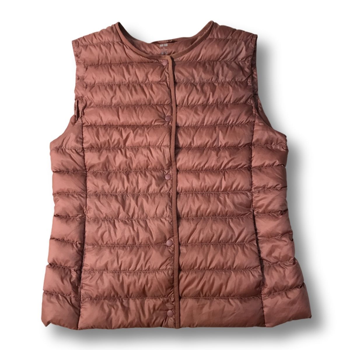 - 《良品◎》UNIQLO ユニクロ★ノーカラー*ウルトラライトダウンベストジャケット*ピンク*サイズM(LA2874)◆S60
