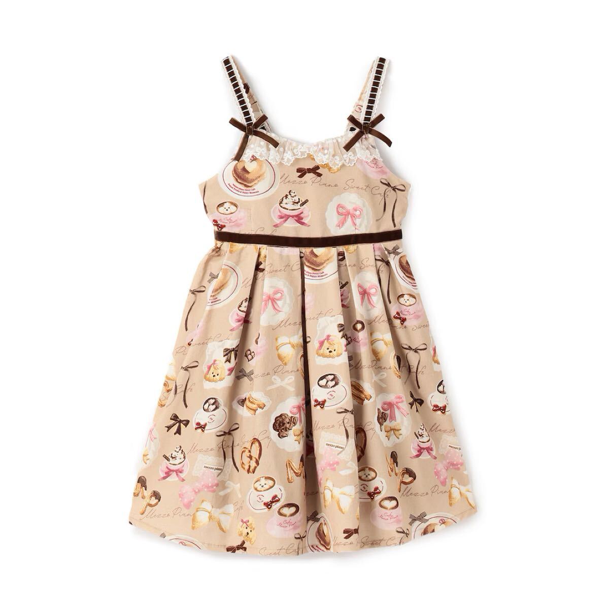 - メゾピアノ新品新作カフェ柄 キャミワンピース130シナモン